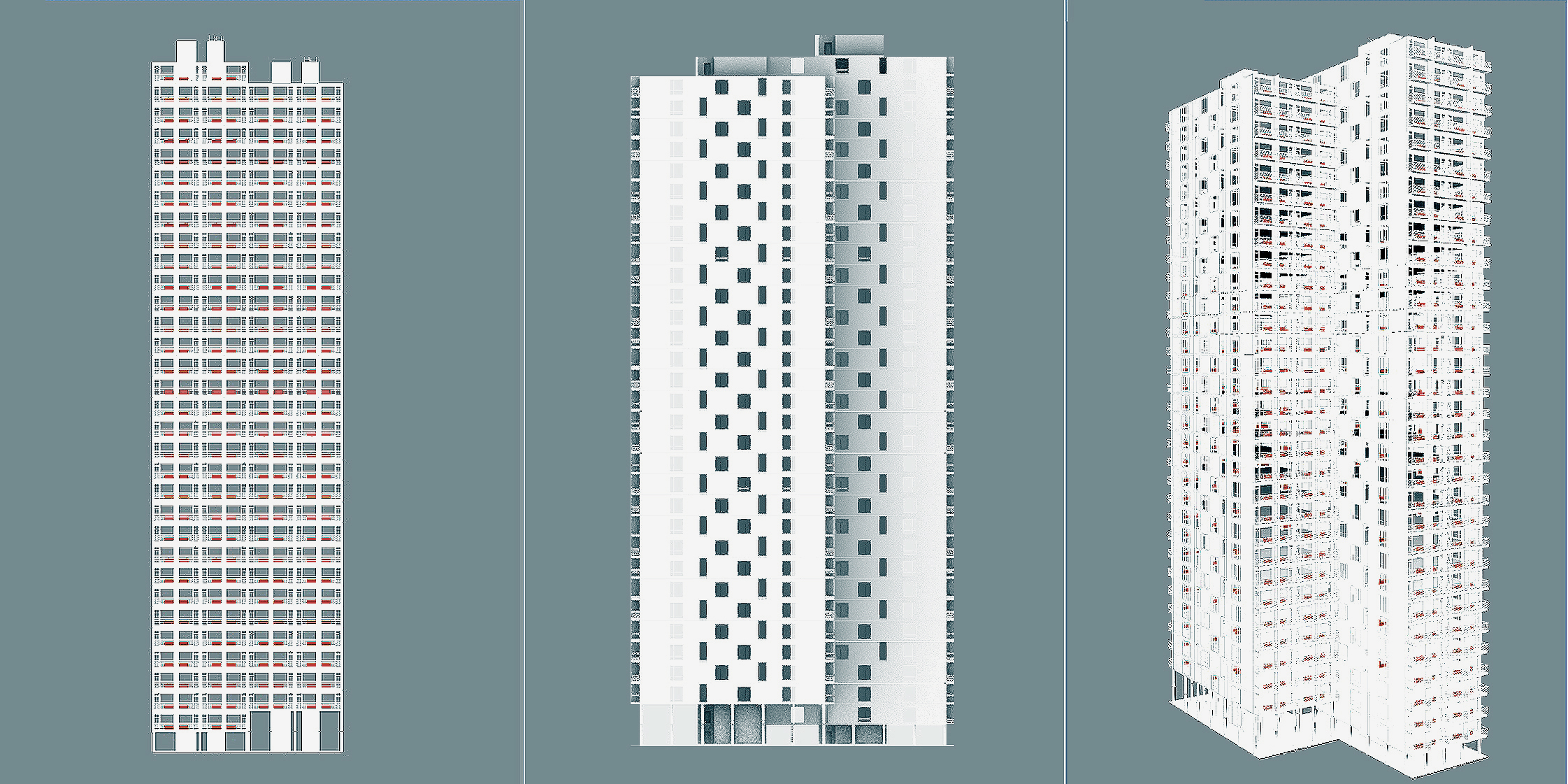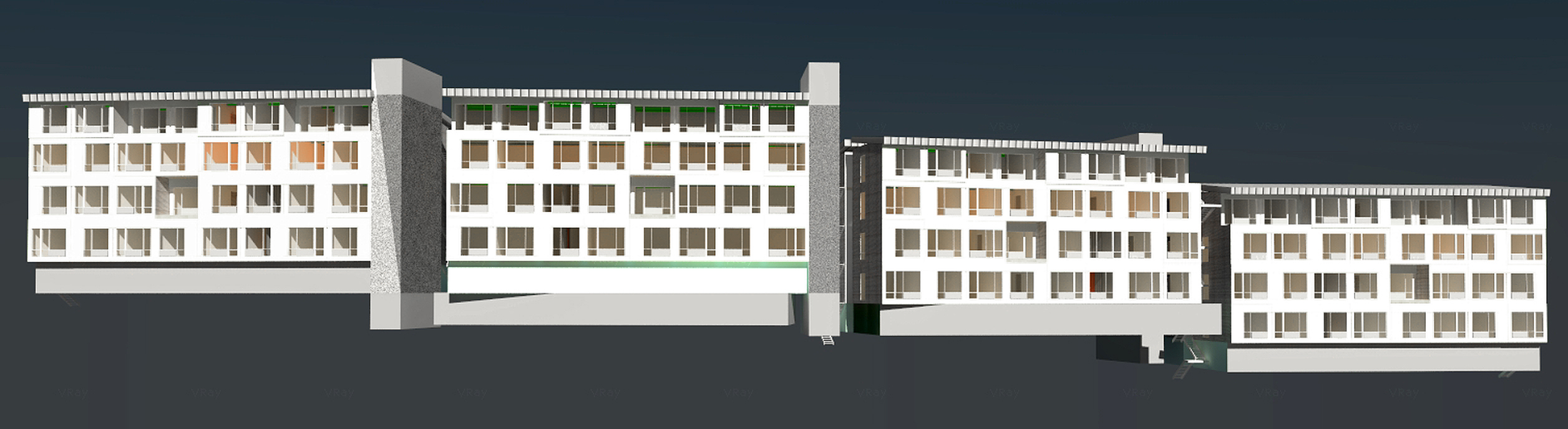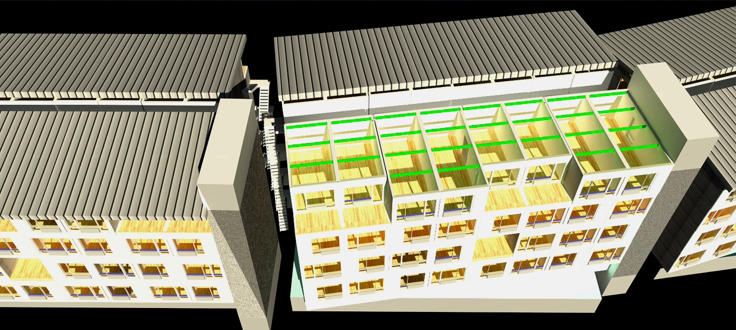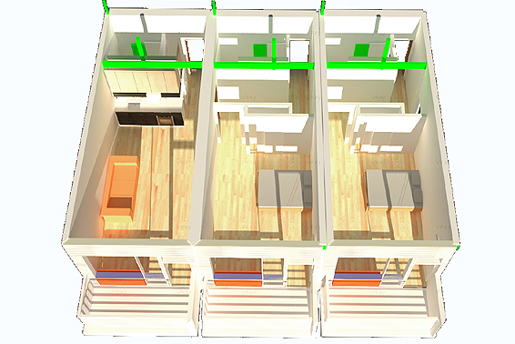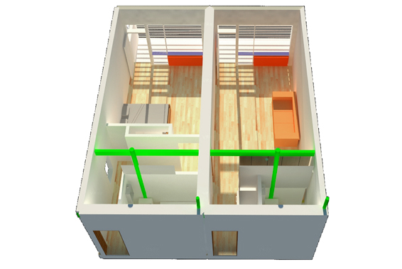 The design of Volumetric emanates takes as its basis longer and deeper enclosures having fenestration at the end transverse to the axis of the volume. As a result it has maximal stiffness for the enclosed volume and can go high as mid rise assembly, assuming tolerances can be controlled. QAQC both in the factory and in the field is a central consideration in this delivery model.