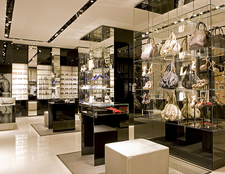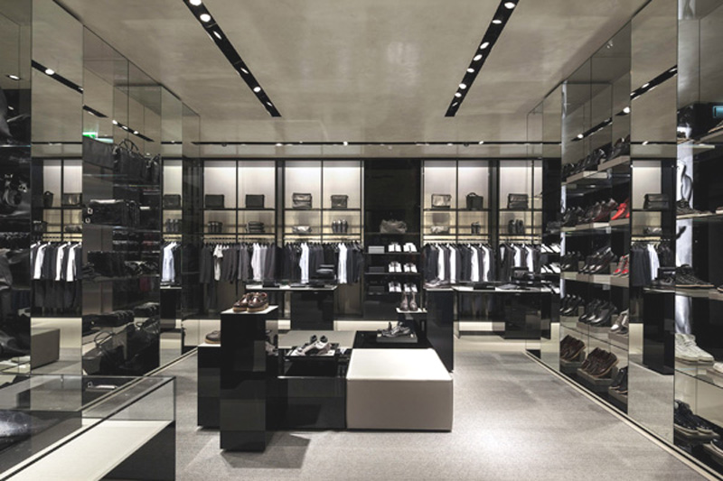 Armani Store, Michigan Avenue & Oak Streets, Chicago, IL, 1980. Interior Design and Detail. Showcases, Exhibtion, Materials, Finishes. Redesigned, rebuilt by Others, 2015 ff..