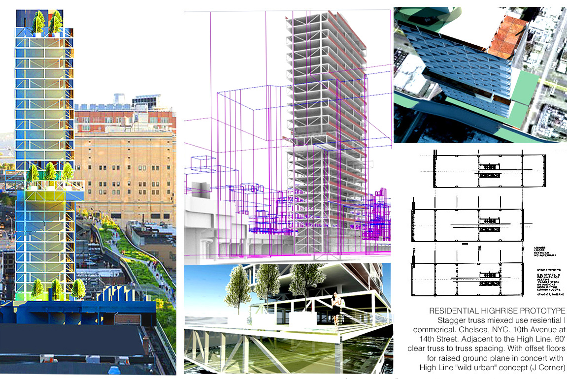 Vertical Steel Spanning Proposals. Steel Stagger Trussing. For Architectural Midrise Programs economically delivered incl. Commercial and residential. Allows very wide large clear span for flexible deployment of various program types. Currentlyly used in Design Delivery of large Las Vegas Hotels. 2012. La Villette Steel Midrise Design Delivery System for residential/commercial. Large Las Vegas Hotels. Modular Prefab. Potential Use in Midrise Affordable Urban Housing. Design Proposal. NYC 2024. ;