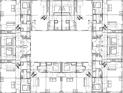 Various Flexible Unit Planning Options, with up to 17' Transverse Spans. All Units with Custom Kitchen and Bathroom Pods.