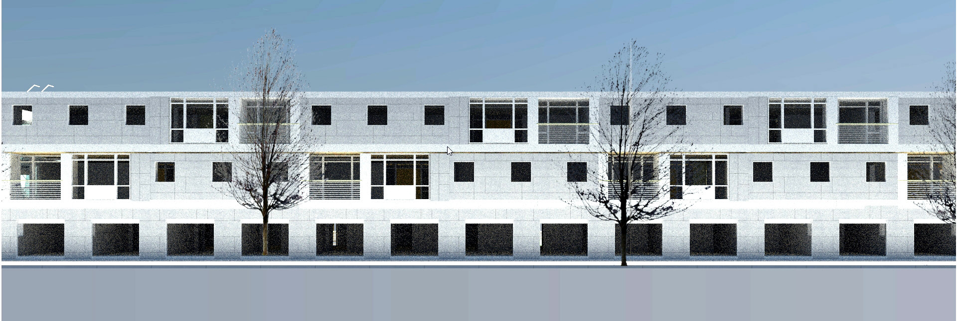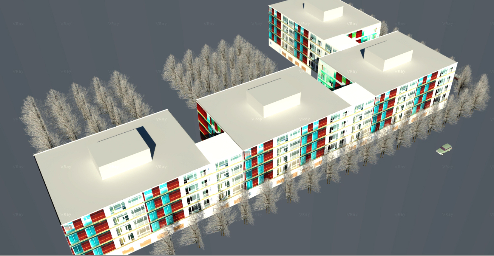 Lowrise Volumetric_Corridor Arranged_Prefab Modular Senior Gated Community Arlington Heights IL 2023. Modelled on Self Storage Planning and Design