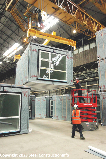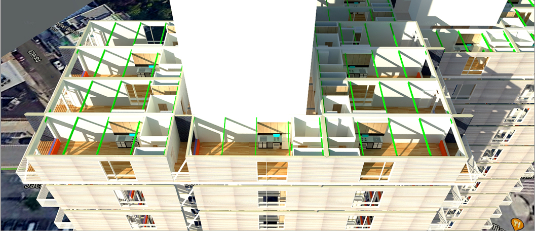 • Volumetric involves enclosures which can operate as structural systems, extending up to 40 stories using steel framing inside the volumetric units, and up to 5 stories with wood framing inside the volumetric units.