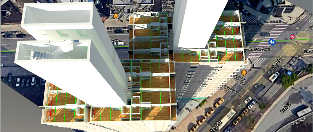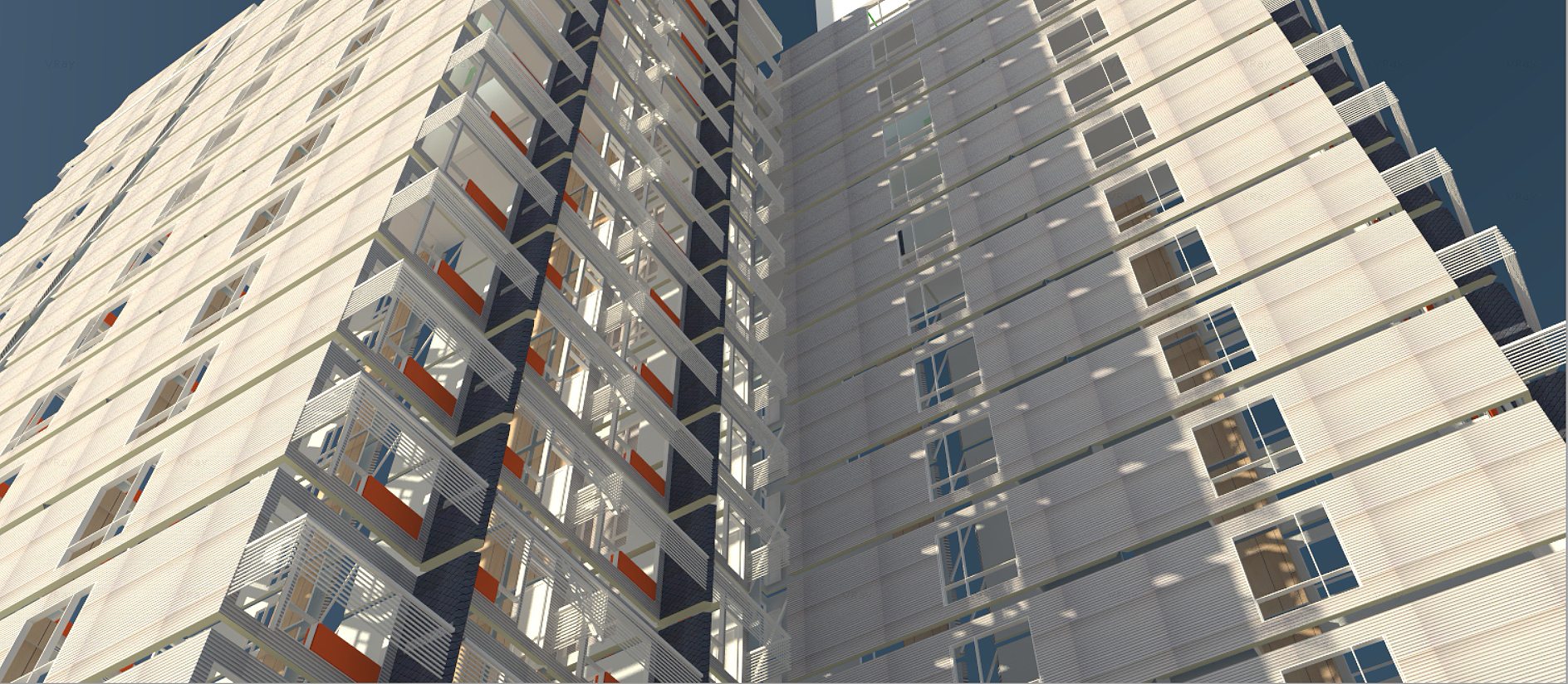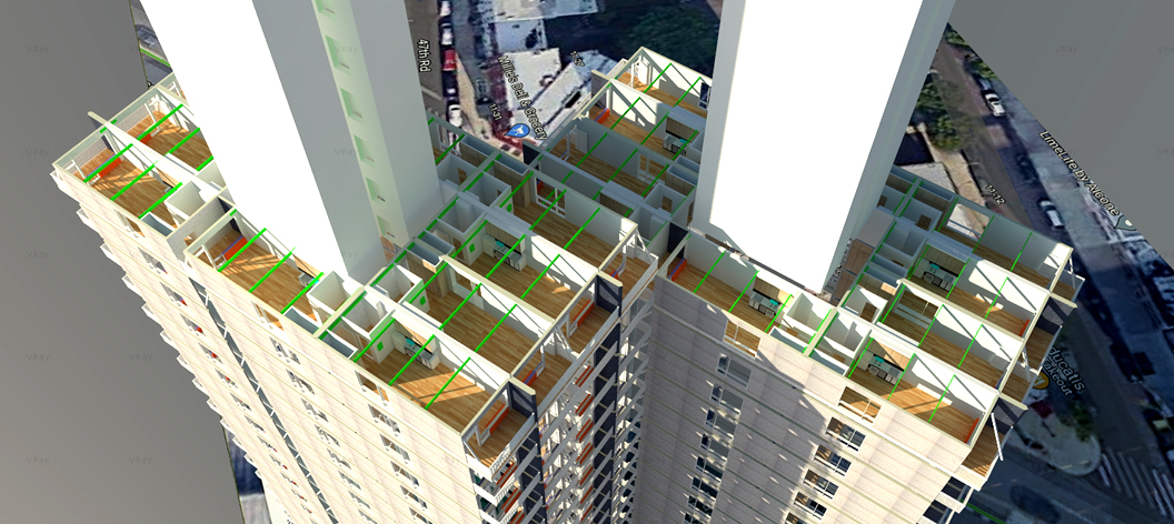 The design of Volumetric emanates takes as its basis longer and deeper enclosures having fenestration at the end transverse to the axis of the volume. As a result it has maximal stiffness for the enclosed volume and can go high as mid rise assembly, assuming tolerances can be controlled. QAQC both in the factory and in the field is a central consideration in this delivery model.